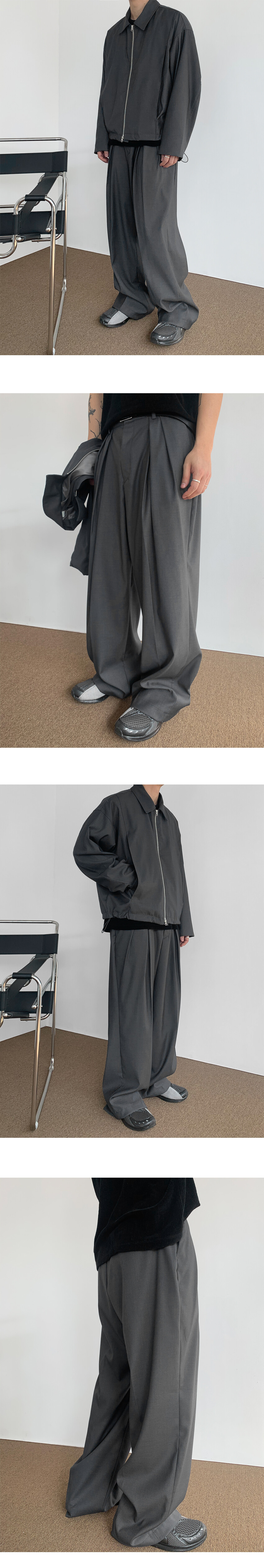전면 맞주름 투 턱 디테일
