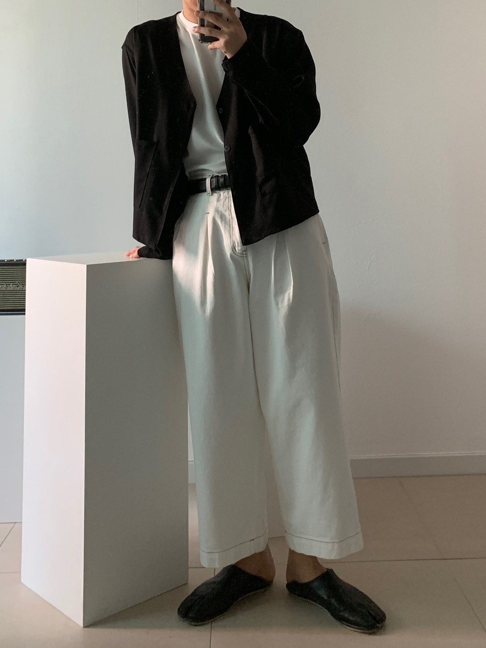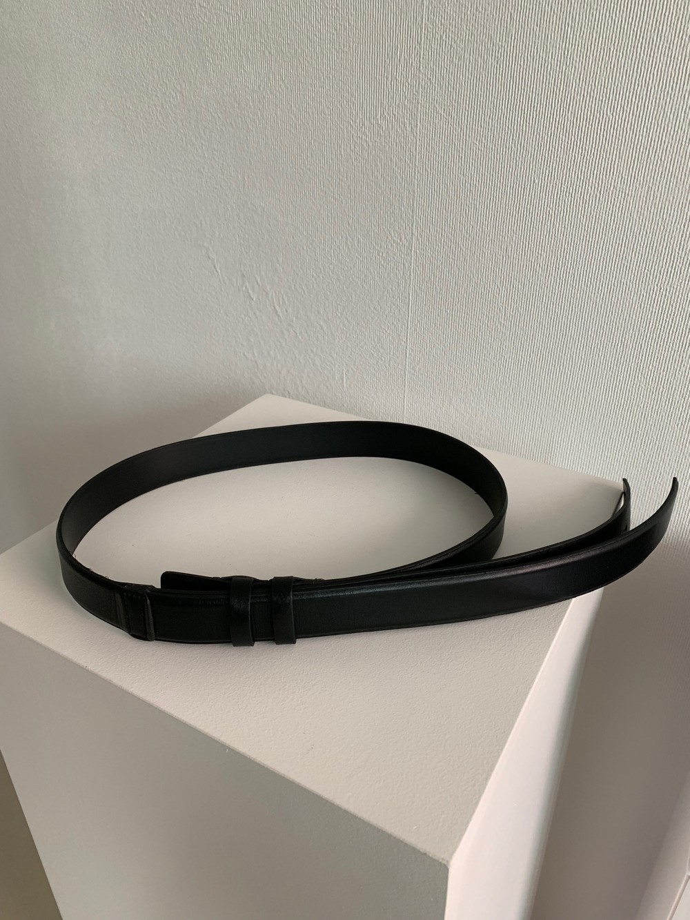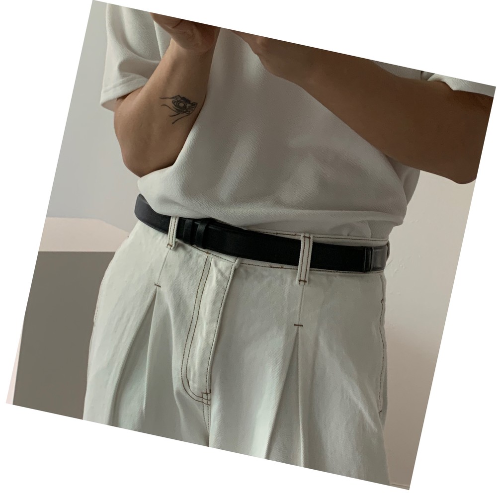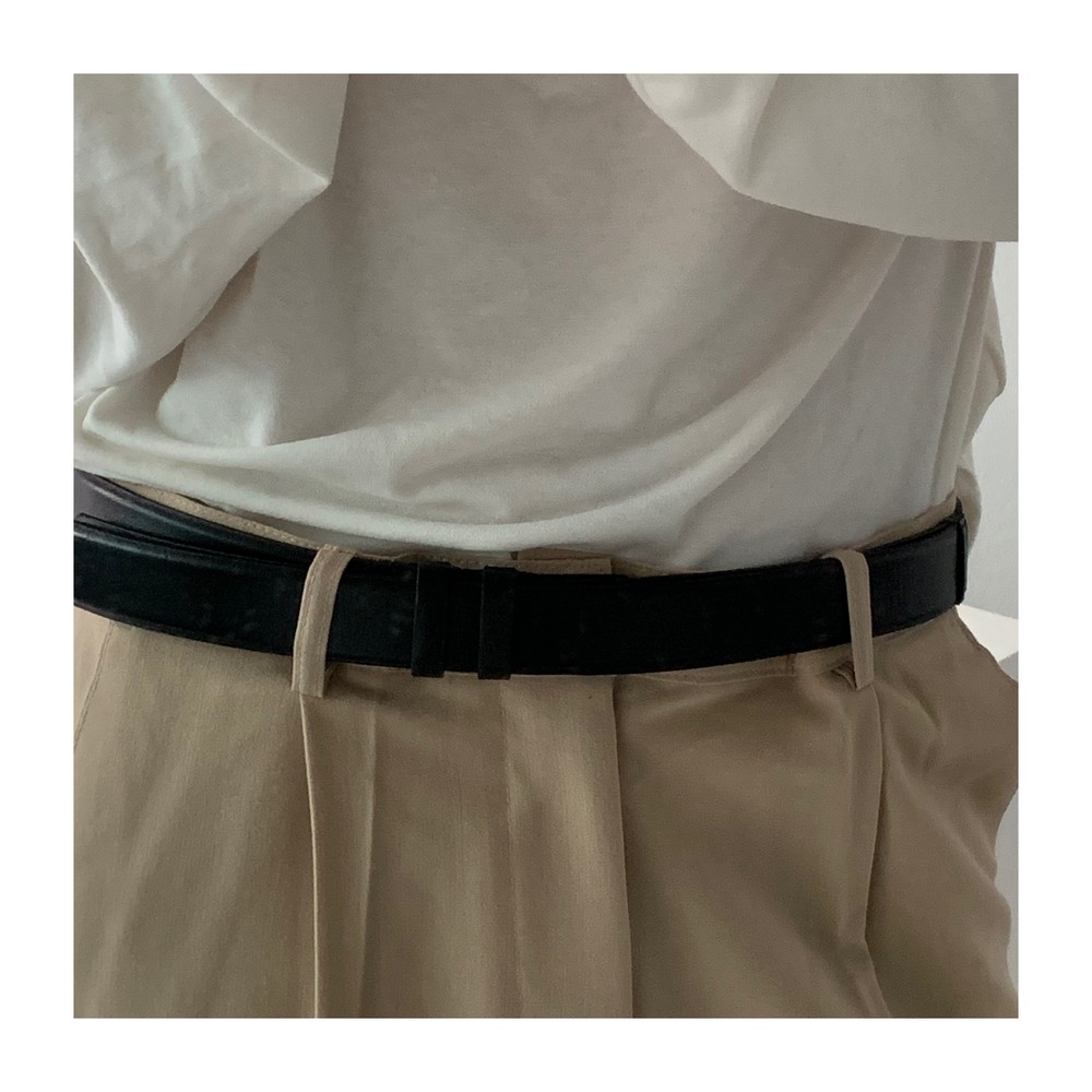 벨트 버클 부분을 가려 착용 시 가죽 부분만 보여지는 형식인 벨트입니다 미니멀하게 깔끔한 실루엣을 연출 할 수 있으십니다